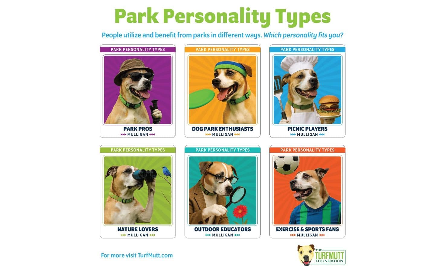 TurfMutt introduces the Power of Parks and Park Personalities concept to help encourage use of our community’s green spaces and park systems.