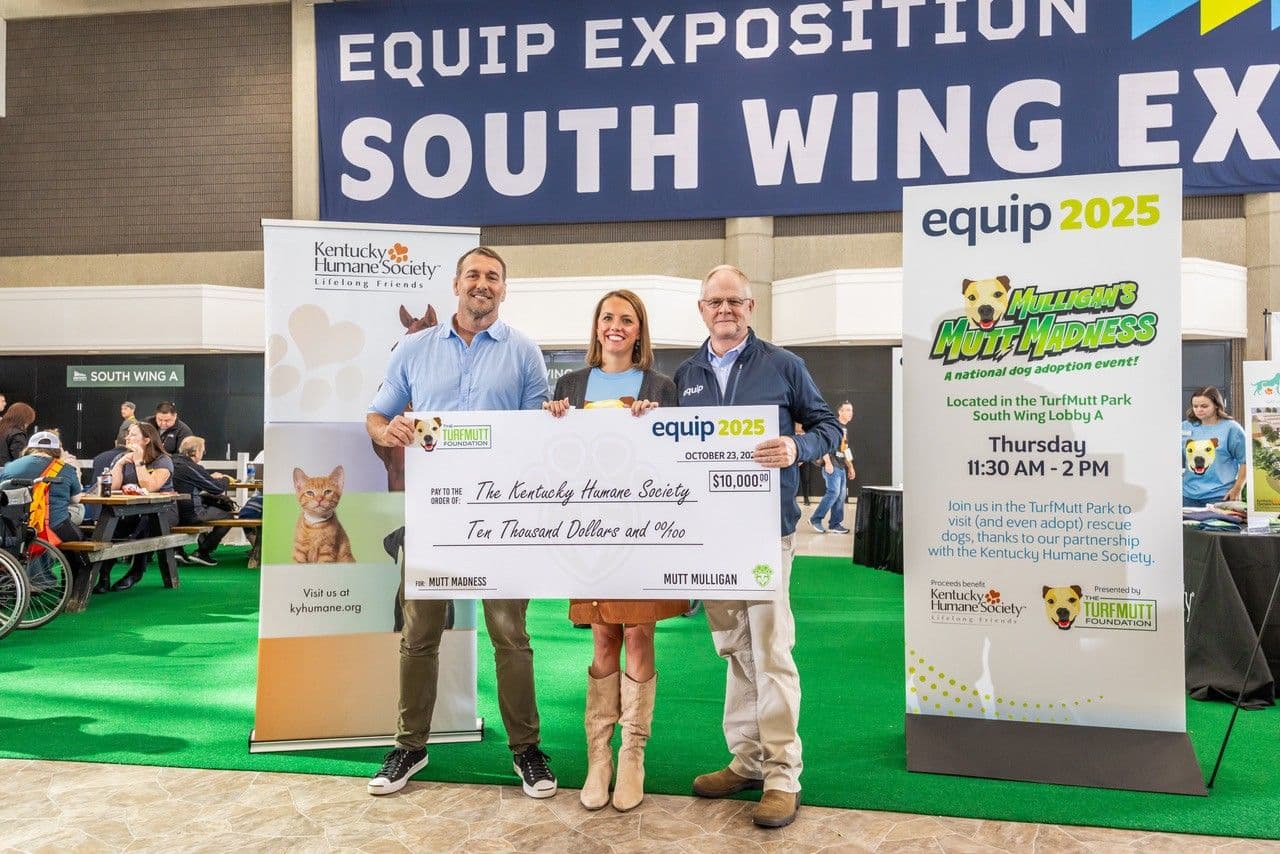 LOUISVILLE, Ky. – The TurfMutt Foundation’s 7th Annual Mulligan’s Mutt Madness, held in partnership with the Kentucky Humane Society (https://www.kyhumane.org/) (KHS) at Equip Exposition 2025, was a huge success with 13 shelter dogs finding their forever homes. A beloved Equip tradition, the popular event featured three-time Emmy-winning host of Lucky Dog, Brandon McMillan, who was on hand to celebrate with new pet parents. At the event, the Foundation also presented a $10,000 donation to KHS.