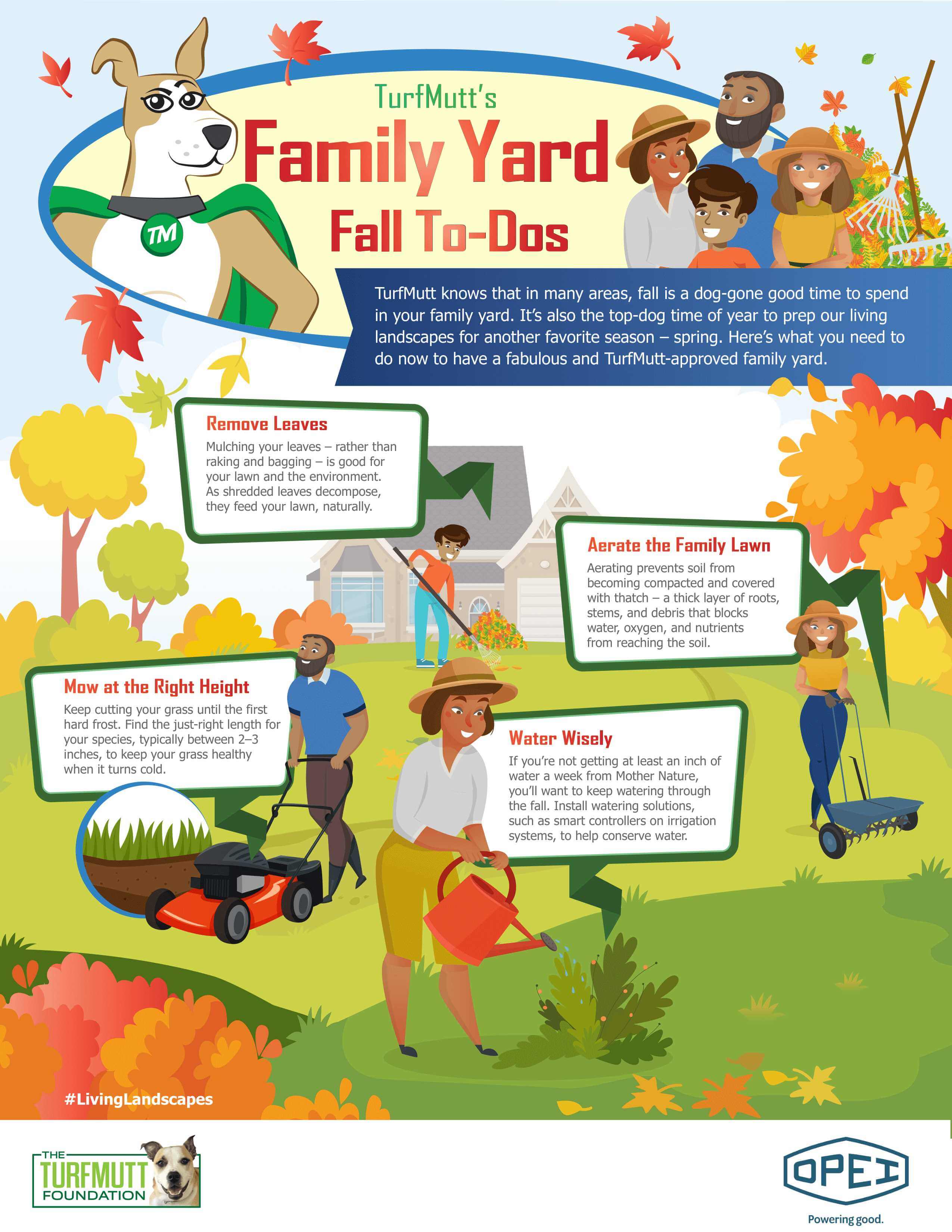 This graphic from the TurfMutt Foundation offers tips to get your own personal green space in tip-top shape this fall to reap the rewards of your efforts next spring and summer.