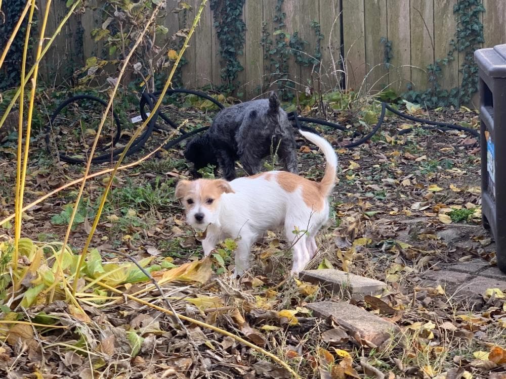 Abe is a Jack Russell terrier mix who was adopted at Mutt Madness 2019. Abe is a blonde and white pup who joined a pack with two other terrier friends. Michaelโs wife went to Equip Expo because she was working for Caterpillar. When she saw Abe, she knew he had to be part of their pack.