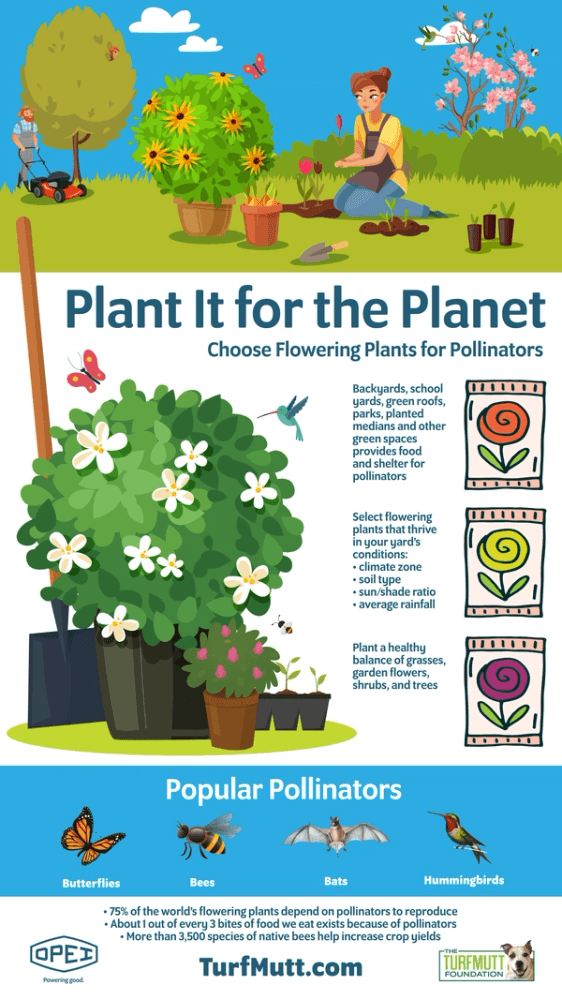 “Our cities and neighborhoods have disrupted the natural ecosystem pathways that pollinators rely upon, but our backyards and community parks can help by providing these important creatures a vital link to habitat and food,” said Kris Kiser, President & CEO of the TurfMutt Foundation. “We encourage every homeowner and community to plant flowering plants and shrubs, in addition to trees and grass, in their managed landscapes.”