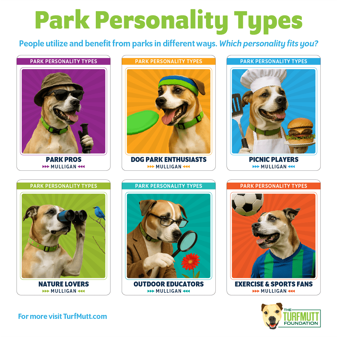 To make the most of your public parks and community green space, identify your park personality type. Check out TurfMutt’s infographic below to get started.