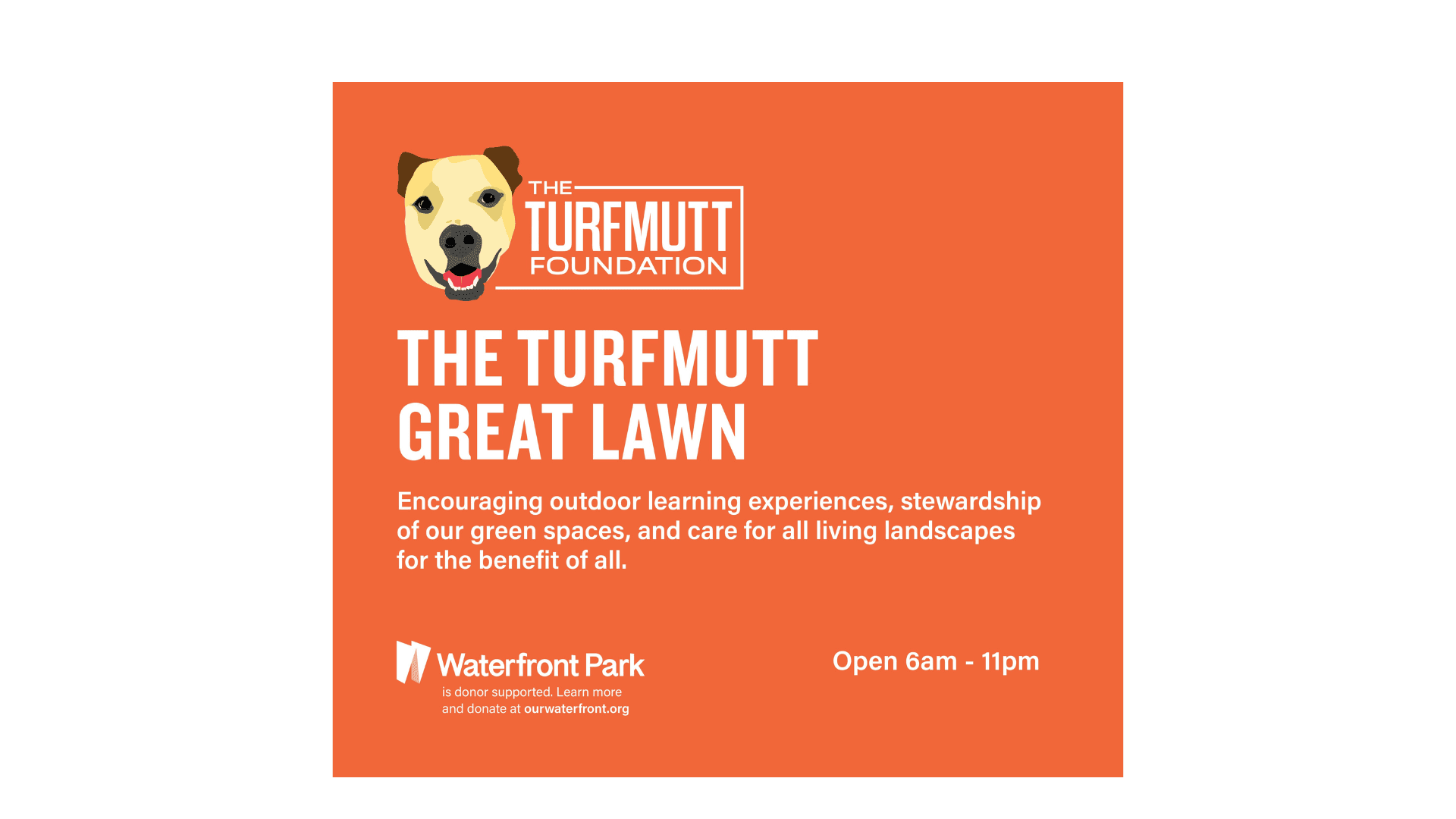 “We are grateful for this tremendous partnership with the TurfMutt Foundation, which comes at a very special time as we celebrate the 25th anniversary of Waterfront Park,” said Deborah Bilitski, President of Waterfront Park. “The TurfMutt Foundation’s commitment to stewardship of green spaces for the benefit of all will help to ensure the newly renamed TurfMutt Foundation Great Lawn continues to be one of our city’s crown jewels and that Waterfront Park remains beautiful, welcoming, and accessible to everyone.”